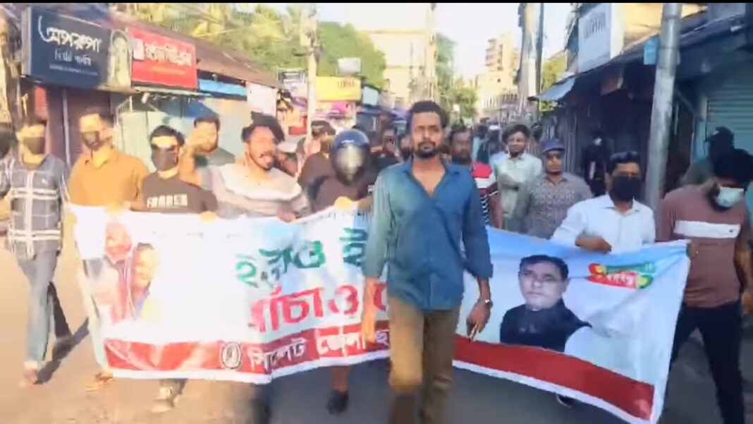 মিছিলের নেতৃত্ব দেন এমসি কলেজ ছাত্রলীগের সভাপতি দেলোয়ার হোসেন রাহী। মিছিলে অংশগ্রহণকারীরা সাবেক প্রধানমন্ত্রী শেখ হাসিনার পক্ষে স্লোগান দেন এবং বর্তমান ইউনুস সরকারের পতনের দাবি জানান।