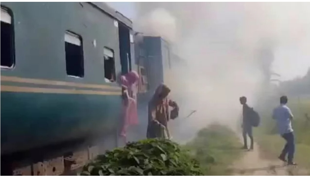 রেলওয়ে পুলিশ জানায়, আগুন লাগার কারণে ইঞ্জিন বিকল হয়ে পড়েছে এবং ইঞ্জিন পরিবর্তনের কাজ চলছে।