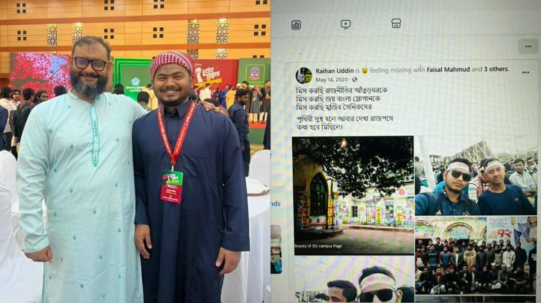 ভাইরাল পোস্টে দেখা যায়, রায়হানের শিবিরবিরোধী বক্তব্যে ‘লাভ’ রিঅ্যাক্ট দিয়েছেন ডাকসুর বর্তমান ভিপি আবু সাদিক কায়েম এবং একই প্যানেলের মুক্তিযুদ্ধ ও গণতান্ত্রিক আন্দোলন বিষয়ক সম্পাদক ফাতিমা তাসনিম জুমা।