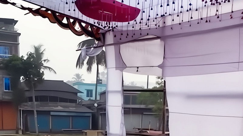 ডেকোরেটর মালিক ফারুক হোসেন জানান, রাত ১২টা পর্যন্ত মঞ্চে কাজ করার পর বাড়ি ফেরেন তিনি। রাত ২টার দিকে আগুন লাগার খবর পেয়ে এসে দেখেন রঙের বাটি দিয়ে পেট্রোল ঢেলে আগুন দেওয়া হয়েছে, যাতে তার বেশ কিছু সাজসজ্জার সামগ্রী পুড়ে গেছে।