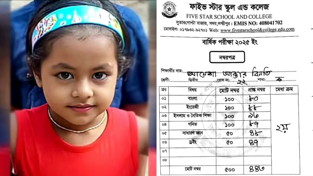 স্থানীয় ফাইভ স্টার স্কুলের শিক্ষকরা জানান, আয়েশা ছিল অত্যন্ত মেধাবী ও নিয়মিত শিক্ষার্থী। দ্বিতীয় শ্রেণিতে রোল ছিল ২২, তৃতীয় শ্রেণিতে তার রোল নির্ধারিত হয়েছিল ২। কিন্তু নতুন শ্রেণিকক্ষে ‘প্রেজেন্ট স্যার’ বলা আর হলো না তার। ফলাফল প্রকাশের পর শিক্ষক, সহপাঠী ও অভিভাবকদের চোখে নেমে আসে অশ্রু।