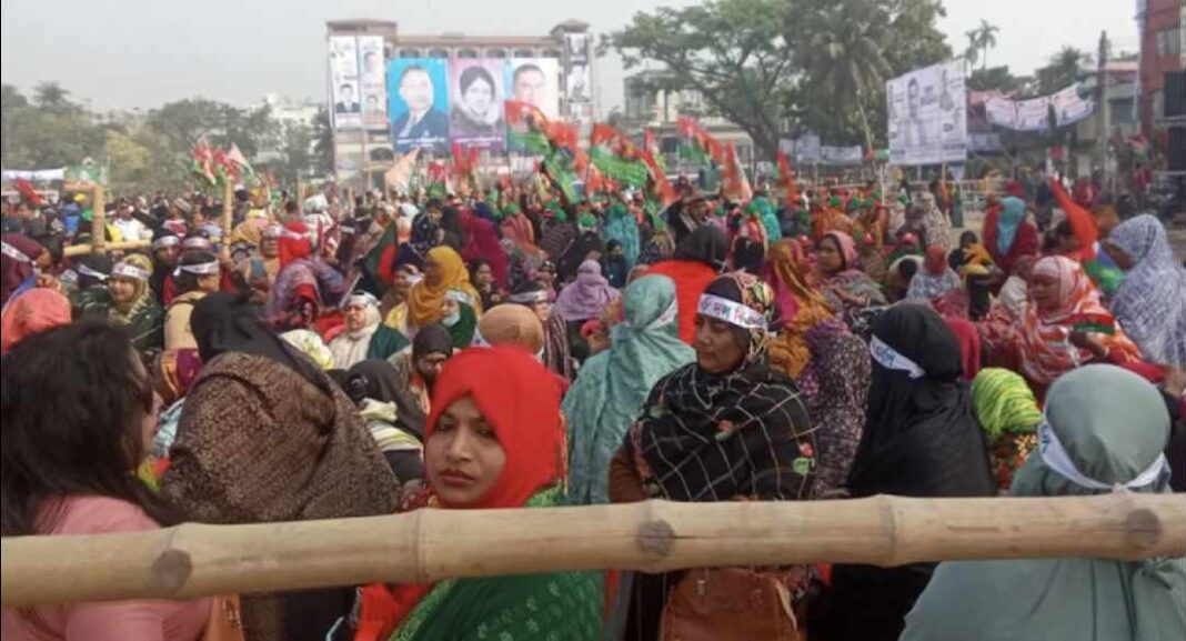 তারেক রহমানের এই জনসভাকে ঘিরে সকাল থেকেই নেতাকর্মীদের ব্যাপক উপস্থিতি লক্ষ্য করা যায়। খণ্ড খণ্ড মিছিল নিয়ে বিএনপি ও অঙ্গ-সহযোগী সংগঠনের নেতাকর্মীরা সমাবেশস্থলে জড়ো হতে থাকেন। অনেকের হাতে ছিল ধানের শীষ প্রতীক, কারও হাতে তারেক রহমানের ছবি এবং কারও হাতে জাতীয় পতাকা। বেলা ১১টার আগেই সমাবেশস্থল কানায় কানায় পূর্ণ হয়ে ওঠে।