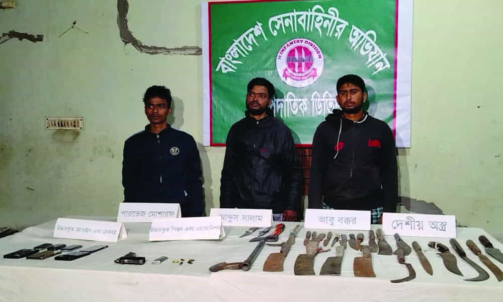 সেনাবাহিনী সূত্রে জানা যায়, গোপন সংবাদের ভিত্তিতে মঙ্গলবার বিকেল ৪টার দিকে তেতুলিয়াগাড়ি এলাকায় অভিযান পরিচালনা করা হয়। শাজাহানপুর আর্মি ক্যাম্পের মেজর মেহেদী হাসান, ক্যাপ্টেন জিসান ও লেফটেন্যান্ট ফাতিনের নেতৃত্বে এ অভিযান চালানো হয়। অভিযানে তাদের কাছ থেকে একটি বিদেশি পিস্তল, তাজা গুলি ও কয়েকটি দেশীয় অস্ত্র উদ্ধার করা হয়েছে।