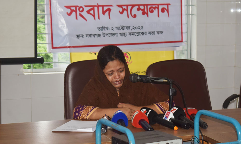 সংবাদ সম্মেলনে ওই শিক্ষার্থীর মা মোসাম্মৎ শিল্পী জানান, তিনি স্থানীয় একটি হাসপাতালে চাকরি করে জীবিকা নির্বাহ করেন। তার মেয়ে নবাবগঞ্জ আইডিয়াল মাদরাসায় সপ্তম শ্রেণিতে পড়ে।