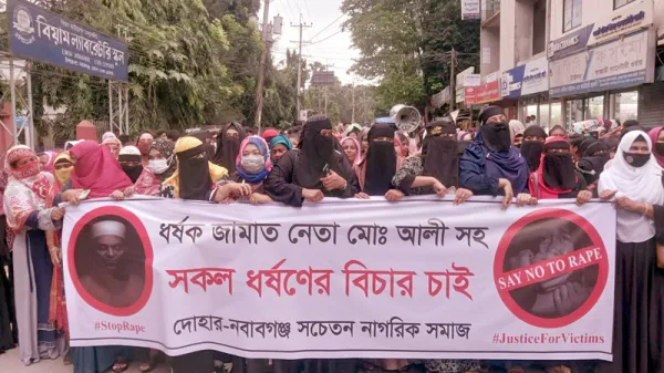 জামায়াত নেতা ও মাদরাসা অধ্যক্ষ মোহাম্মদ আলীর বিরুদ্ধে যৌন হয়রানির অভিযোগসহ দেশে সংঘটিত সকল ধর্ষণ ঘটনার বিচার দাবিতে দোহার-নবাবগঞ্জ নাগরিক সমাজের উদ্যোগে প্রতিবাদ ও বিক্ষোভ মিছিল অনুষ্ঠিত হয়েছে।